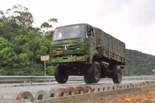 運輸車通過模擬溝壑路