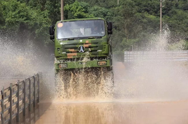 水障礙路段,指揮車需通過0.5米深的水路,運輸車要通過1.7米深的水路,并避免在該路段因熄火、后滑、擦碰邊墻等犯規(guī)動作造成扣分。