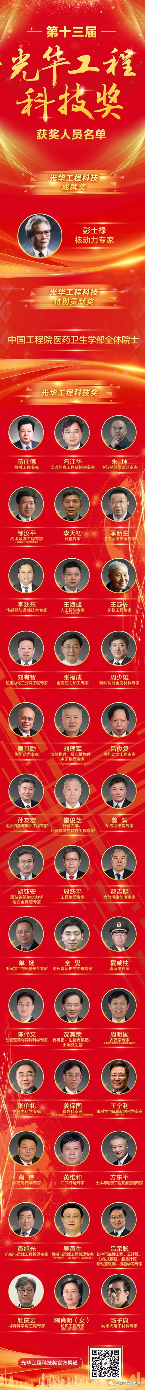 11月8日,第十三屆光華工程科技獎揭曉儀式在北京隆重舉行。中國兵器工業(yè)集團有限公司科技委副主任委員、戰(zhàn)術導彈工程專家鄒汝平獲第十三屆光華工程科技獎(獲獎人員全名單及鄒汝平事跡附后)。 光華工程科技獎由中國工程院主管,每兩年頒發(fā)一次,目前已是第十三屆,被譽為“中國工程界最高獎項”,極大地激勵了我國工程師、科學家從事工程科技研究、發(fā)展、應用的積極性和創(chuàng)造性。根據光華工程科技獎候選人提名要求,候選人需在重大工程設計、研制、建造、生產、運行、管理等方面解決關鍵科學技術問題或在工程科學技術及工程管理領域有重要發(fā)現(xiàn)、發(fā)明,并有顯著應用成效,或者是應用本人研究成果、發(fā)明創(chuàng)造,發(fā)展高新技術及相關產業(yè),成效特別顯著者才可提名。今年,全國范圍內共產生了296名有效候選人。 此次揭曉儀式正式公布了從296名候選人中評選出的第十三屆光華工程科技成就獎、光華工程科技特別貢獻獎以及光華工程科技獎的獲得者,最終僅有40位專家和1個團體獲獎。本屆光華工程科技獎的獲獎科學家們,緊密圍繞國家重大戰(zhàn)略需求,瞄準經濟建設和事關國家安全的重大工程科技問題,緊貼新時代社會民生現(xiàn)實需求和軍民融合需求,加快自主創(chuàng)新成果轉化應用,為創(chuàng)新驅動發(fā)展,建設科技強國,以及實現(xiàn)“兩個一百年”奮斗目標和中國夢做出了重要貢獻。 獲獎人員全名單