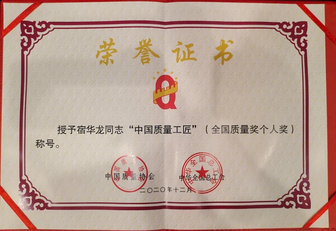 兵器工業(yè)集團(tuán)宿華龍榮獲第十九屆全國質(zhì)量獎“中國質(zhì)量工匠”稱號 |